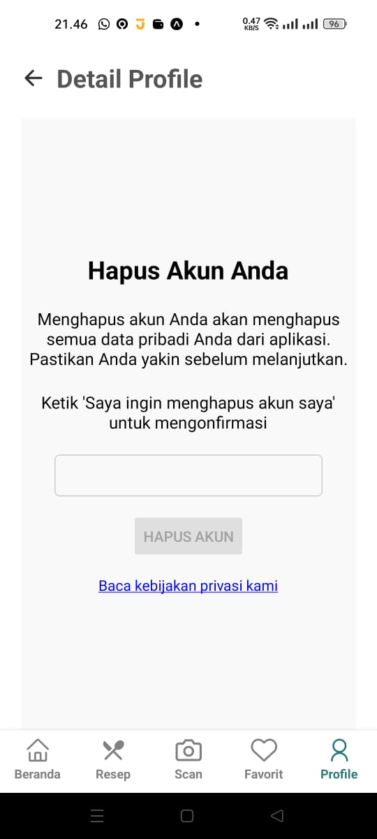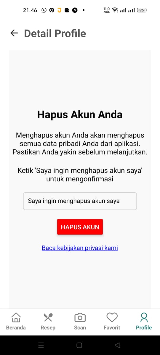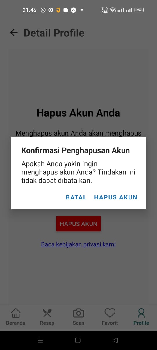 Catatan: Penghapusan akun bersifat permanen dan semua data Anda akan dihapus dari sistem kami.